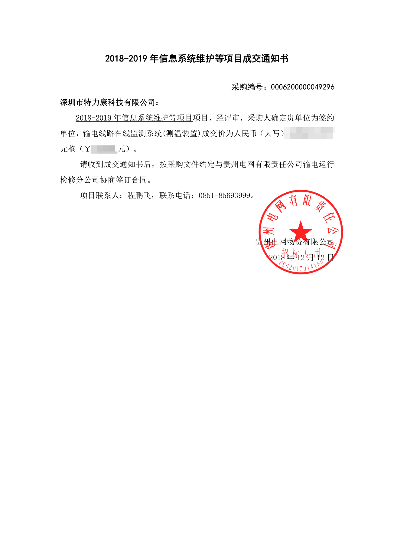 我司中標(biāo)貴州省電力公司2018-2019信息系統(tǒng)維護項目