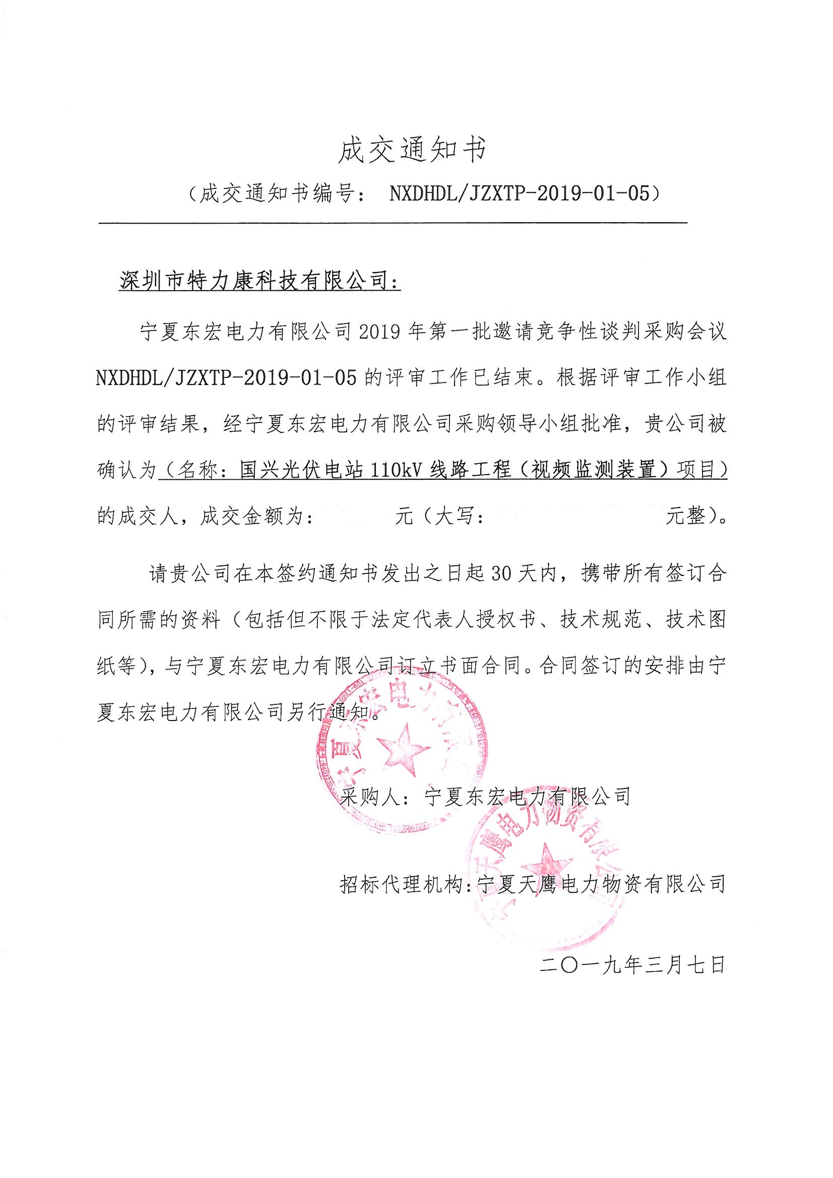 我司中標寧夏2019年第一批邀請競爭性110kv(視頻監(jiān)控裝置)項目