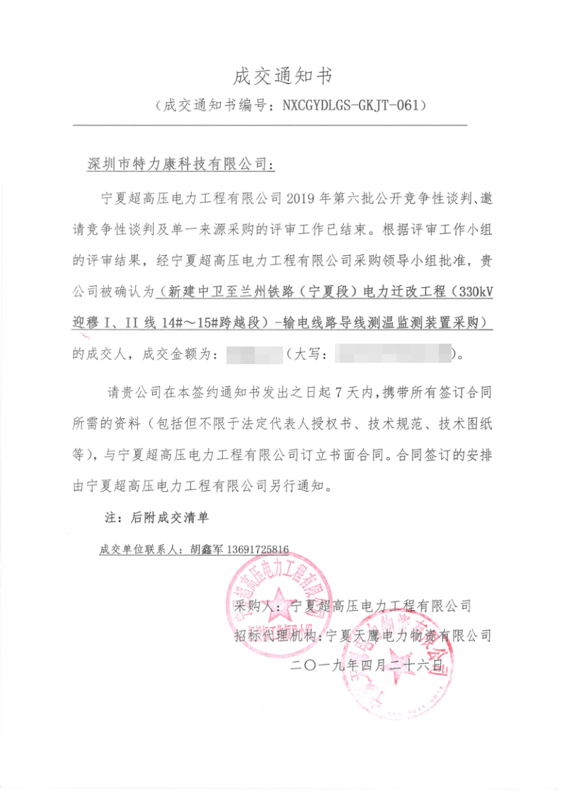 我司中標(biāo)寧夏超高壓局2019年第六批公開(kāi)競(jìng)爭(zhēng)性談判電力遷改項(xiàng)目